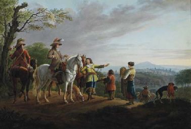 | A Hawking Party Surveying a Landscape from an Outcrop | |