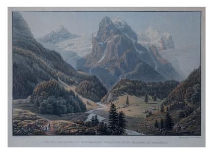 | Vue d'Unterseen et Hinterlacken. Vue d'une partie des environs de Thoune. Vue des montagnes du Wetter-Horn, Well-Horn, et du gla | |