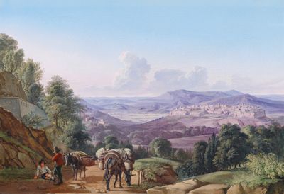| View of Orvieto from the southwest, with resting travellers in the foreground | |