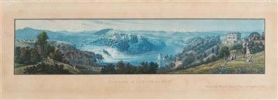 | Rheinfall bei Schaffhausen" kolorierte Aquatintaradierung, bezeichnet "Panorama de la chute du Rhin | |