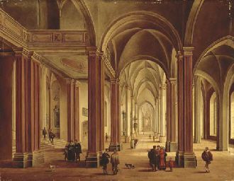 | The interior of a Gothic Cathedral with elegant figures | |