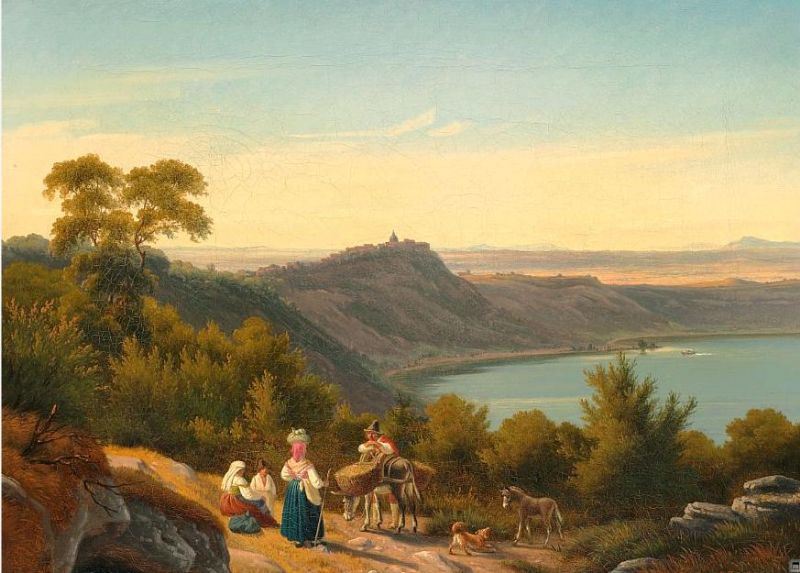 | View over Lake Albano to Castel Gandolfo and the Roman Campagna | |
