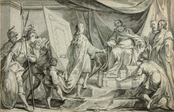 König Salomon wird der Entwurf für einen Tempel gezeigt.