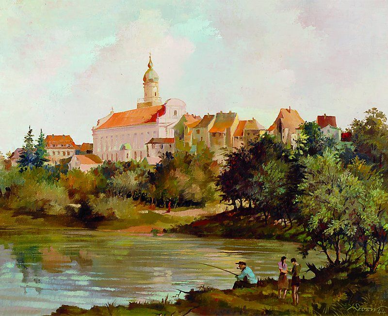 | studierte in Salzburg und Wien, wurde von Herbert Boeckl beeinflusst, hier: Schlosskirche am Weiher | |