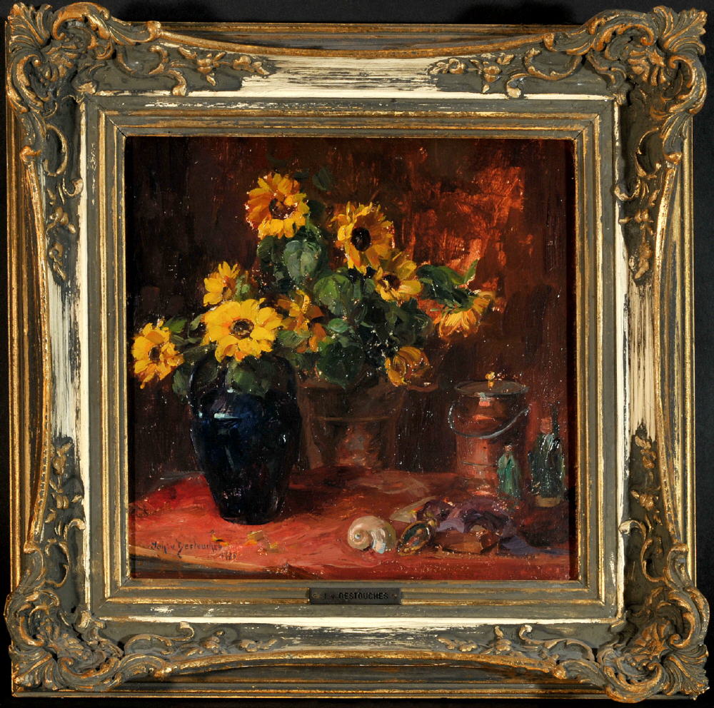 Stillleben mit Anemonen, Schnecke und Kupfergefäß