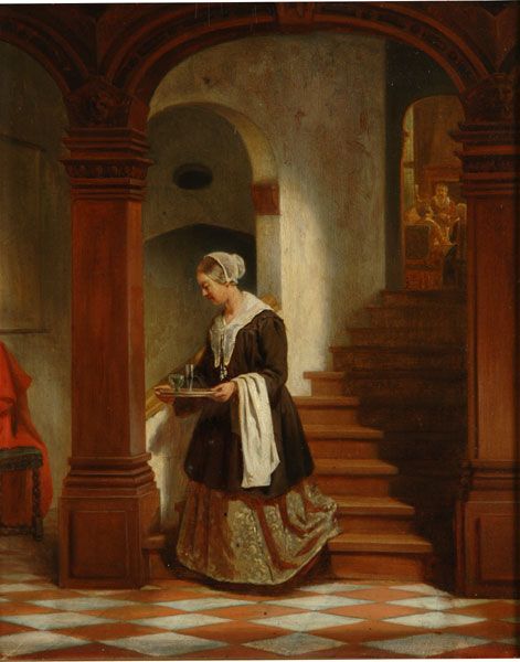 | Dienstertje in 17e eeuwse kledij, in portaal voor opkamer | |