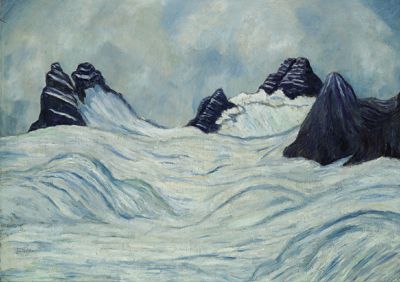 Snow Field with dark Mountain Peaks