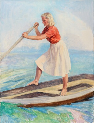 A woman on a boat
