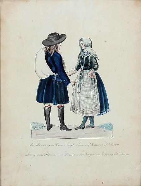 A man and a woman in Danish folk costumes from Kragerup and Toderup.