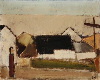 Composition with figure and houses.