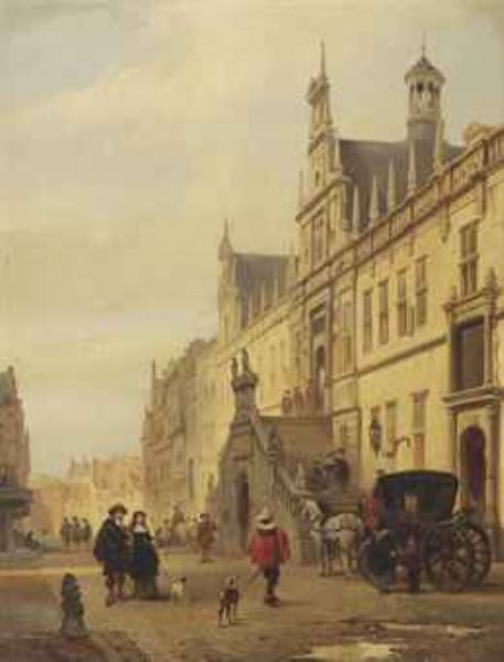 | View of the Breestraat in Leiden with figures before the City Hall | |