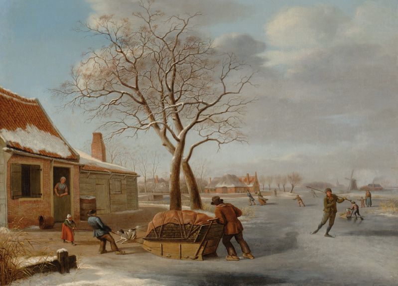 Winterlandschap met schaatsrijders