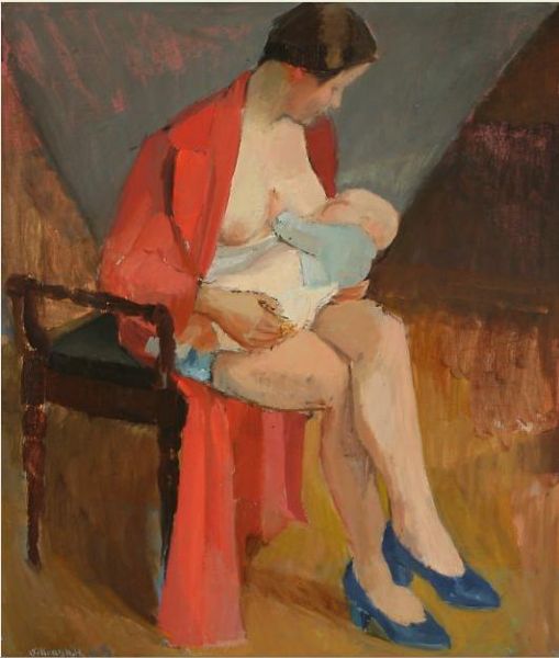 A mother feeding her baby