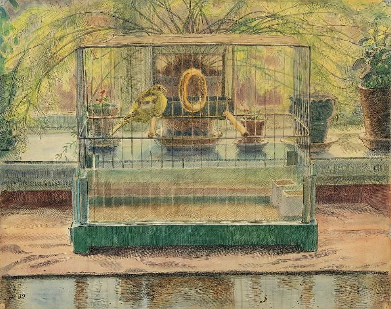 Bird cage on a windowsill