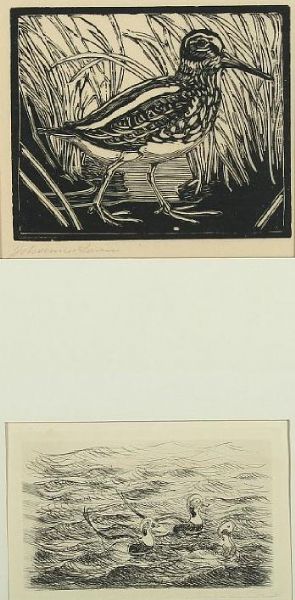 Composition with snipe and composition with sea birds