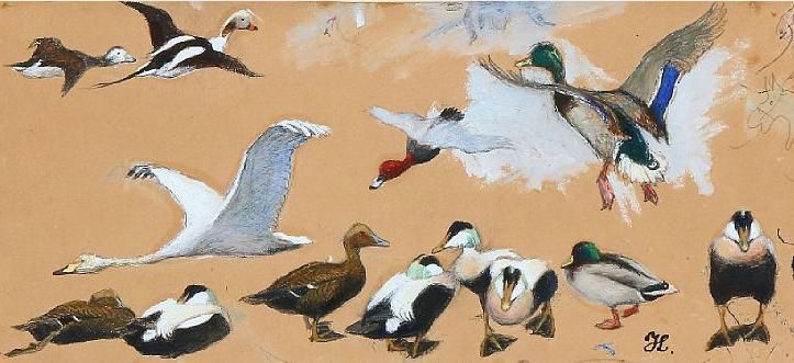 | Study of mallard ducks, eider ducks and a swan | |