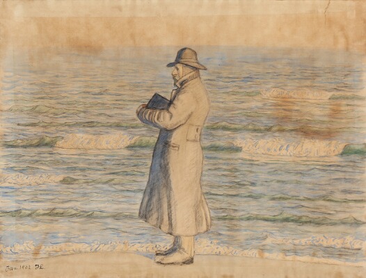 The Danish artist Fritz Syberg is drawing on the beach