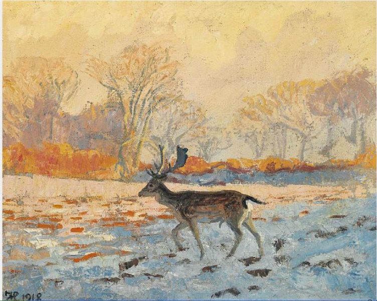 Winter day with a fallow buck in Wedellsborg Deer Garden