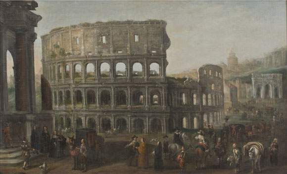 | Volksszene vor dem Kolosseum und dem Konstantinsbogen in Rom | |