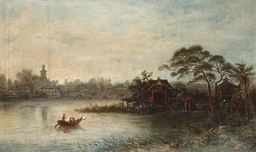 An Oriental river landscape