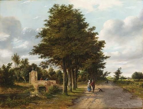 FIGURES ON A COUNTRY ROAD NEAR LOOSDUINEN