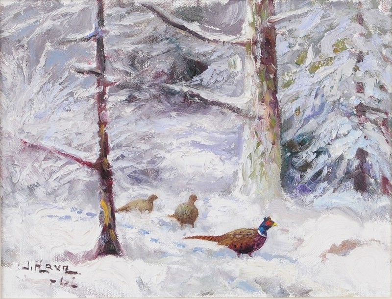 fasaner i vinterlandskap
