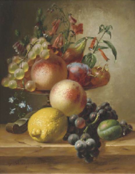 Still life with fruit on a ledge