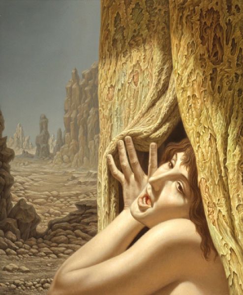 Jonge Vrouw schuift het Gordijn van haar Dromen opzij