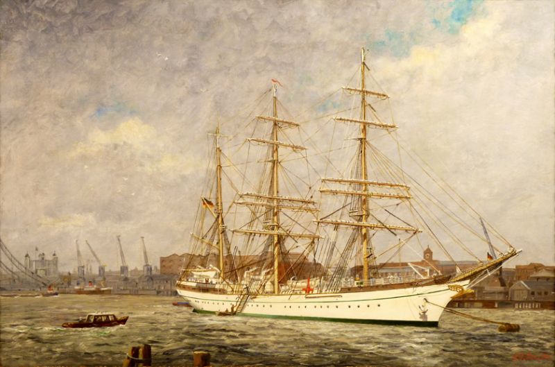 THE SAIL TRAINING SHIP GEORGE FOCH ANCHORED ON THE THAMES