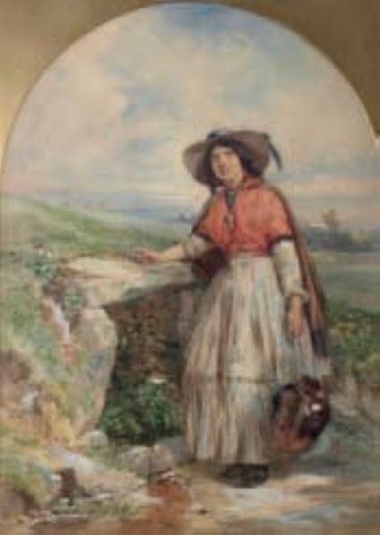 At The Well; a country lass in a landscape
