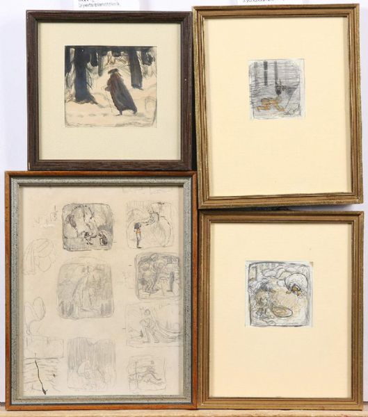 Skissblad med troll och sagofigurer