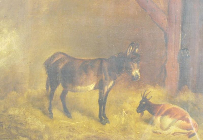 | A stable interior with a grey pony and Dog, ; and Stable Companions | |