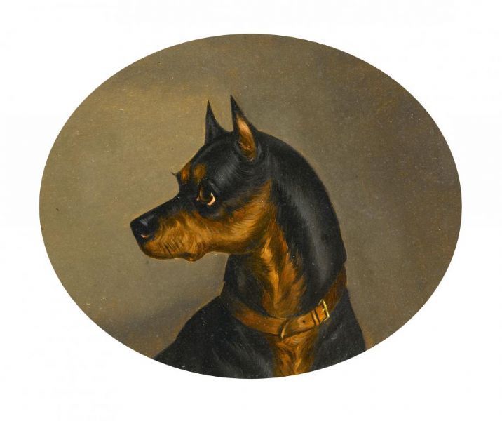 | HEAD OF A BLACK AND TAN TERRIER; HEAD OF A SPRINGER SPANIEL | |