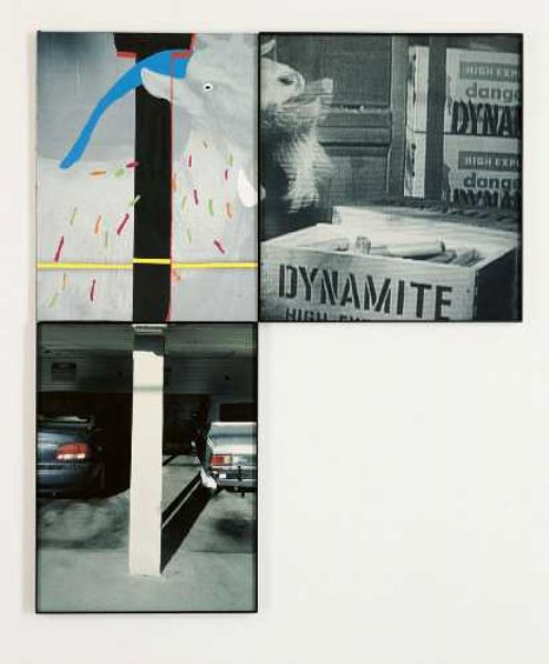 The overlap series: Building (with two Cars) and Goat Eating Dynamite