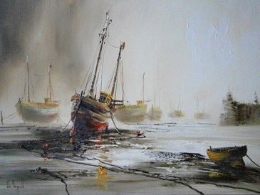 Fishing vessels at low tide