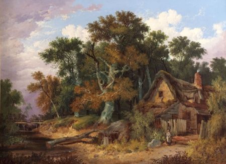 East Anglian Wooded Landscape with Figure by a Cottage