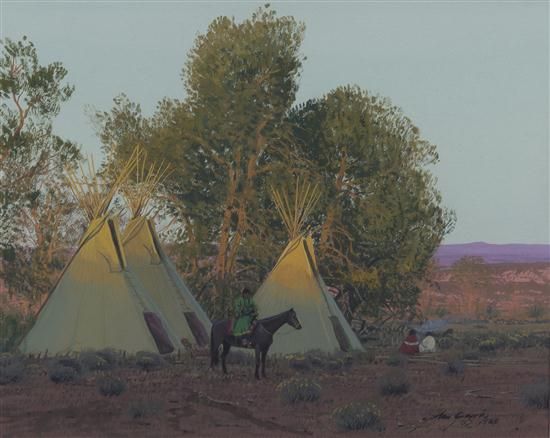 Native American Tents at Sunset