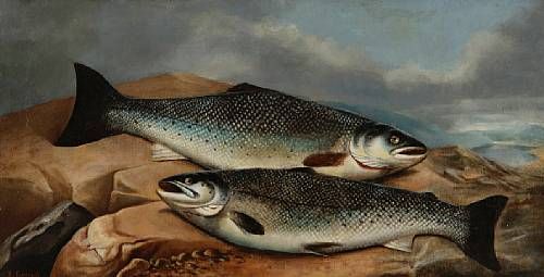 A brace of salmon on a rock