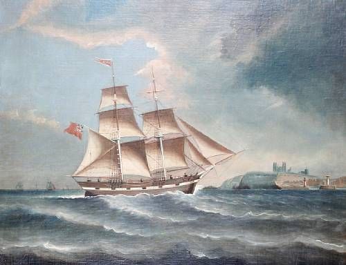 The two masted merchantman, 'Belle', in full sail off Whitby