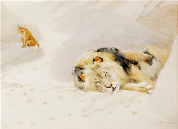 Fox and slumbering lion