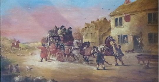 The Royal Mail coach arriving at The Old Fox inn