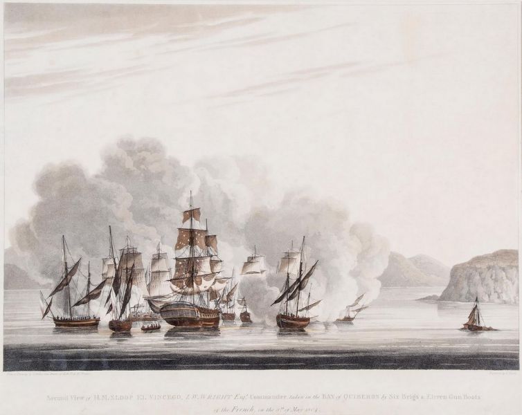 A pair of views of the capture of H.M. Sloop El Vincego in May