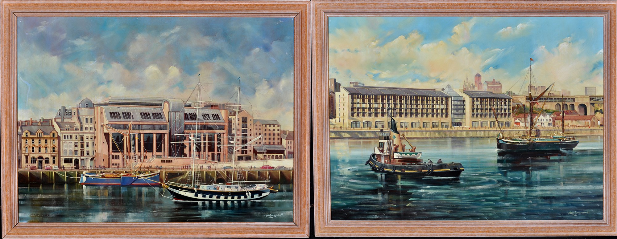 Views along Newcastle Quayside showing the new Court building and the Copthorne Hotel