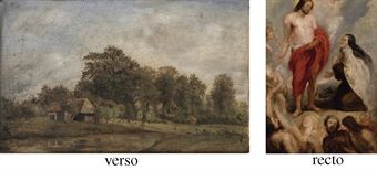 | Saint Theresa interceding for Bernardino de Mendoza, after Rubens (recto); and A wooded landscape with a cottage beyond (verso) | |