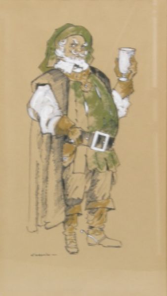 Falstaff portrayed standing cup in hand
