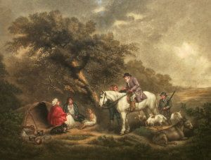 | Peasants and master in a wooded landscape and figures by an inn | |