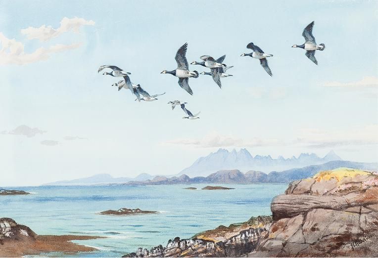 A SKEIN OF BARNACLE GEESE - THE CUILLINS IN THE DISTANCE