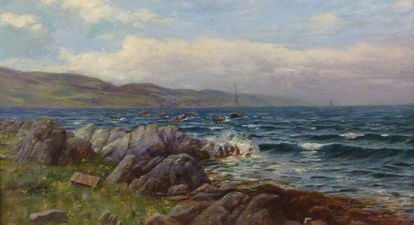 Coastal scene with Fishing Boats at Anchor,