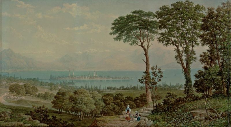 Blick vom Hoyerberg auf die Insel Lindau an einem prachtvollen Sommertag.