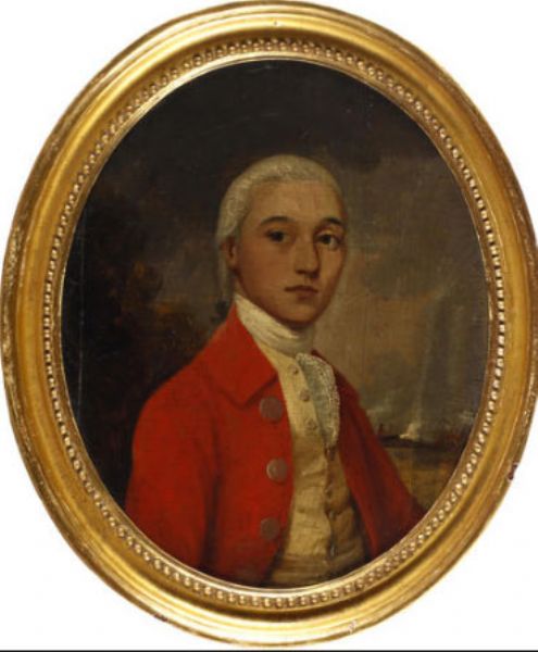 A Young Gentleman wearing scarlet coat and buff waistcoat, his hair powdered